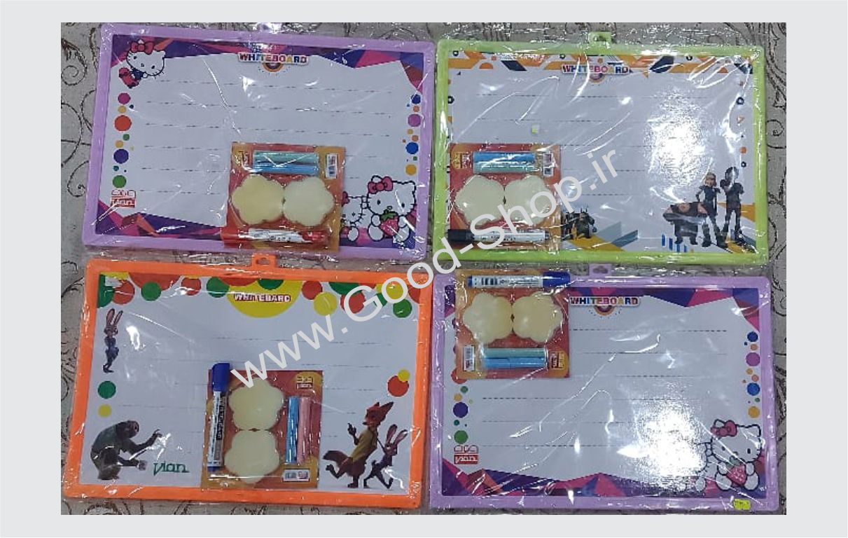 صفحه وایت برد دو طرفه مذکور دارای رنگ بندی و عکس های فانتزی بر تخته وایت برد است.